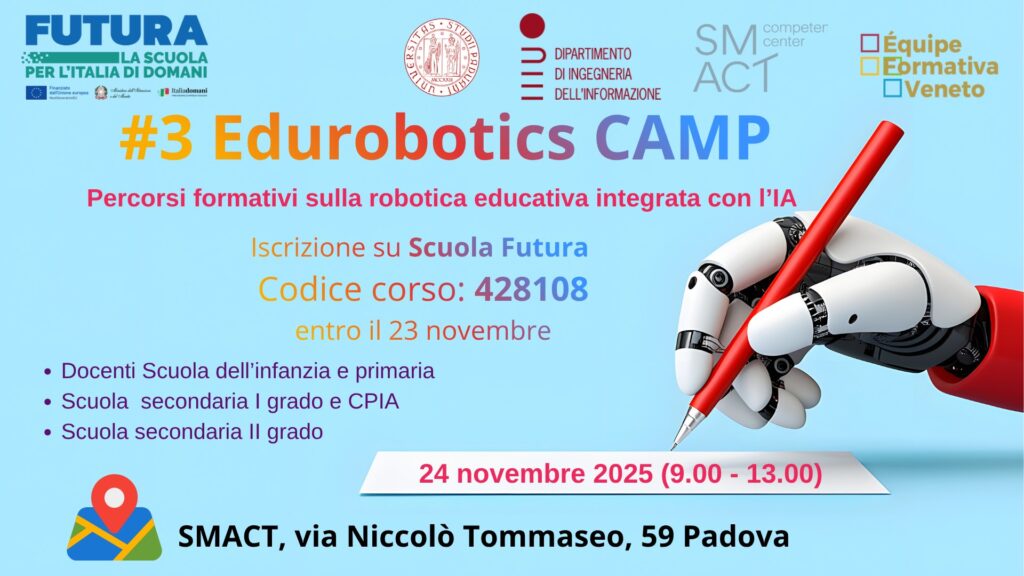On February 11th, on the occasion of the International Day of Women and Girls in Science, we hosted the #4Edurobotics Camp at the Engineering HUB in Padova — an afternoon training event for teachers of all school levels, organised in collaboration with the Équipe Formativa Territoriale of USR Veneto. My contribution focused on how educational …