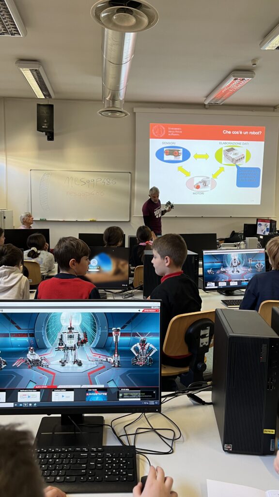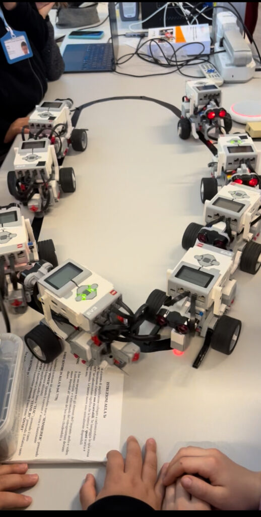 Guided by Prof. Menegatti — with my support — students learned what a robot is, how to program it, and how its sensors work. They also built a robot car that was able to drive autonomously, following a black line traced on the floor.